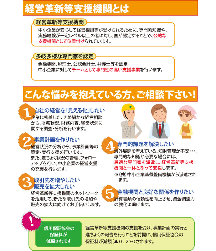 支援事業の担い手の多様化・活性化を目的として、専門性の高い支援事業を実現することのできる機関を「経営革新等支援機関」として認定する制度が創設されました。